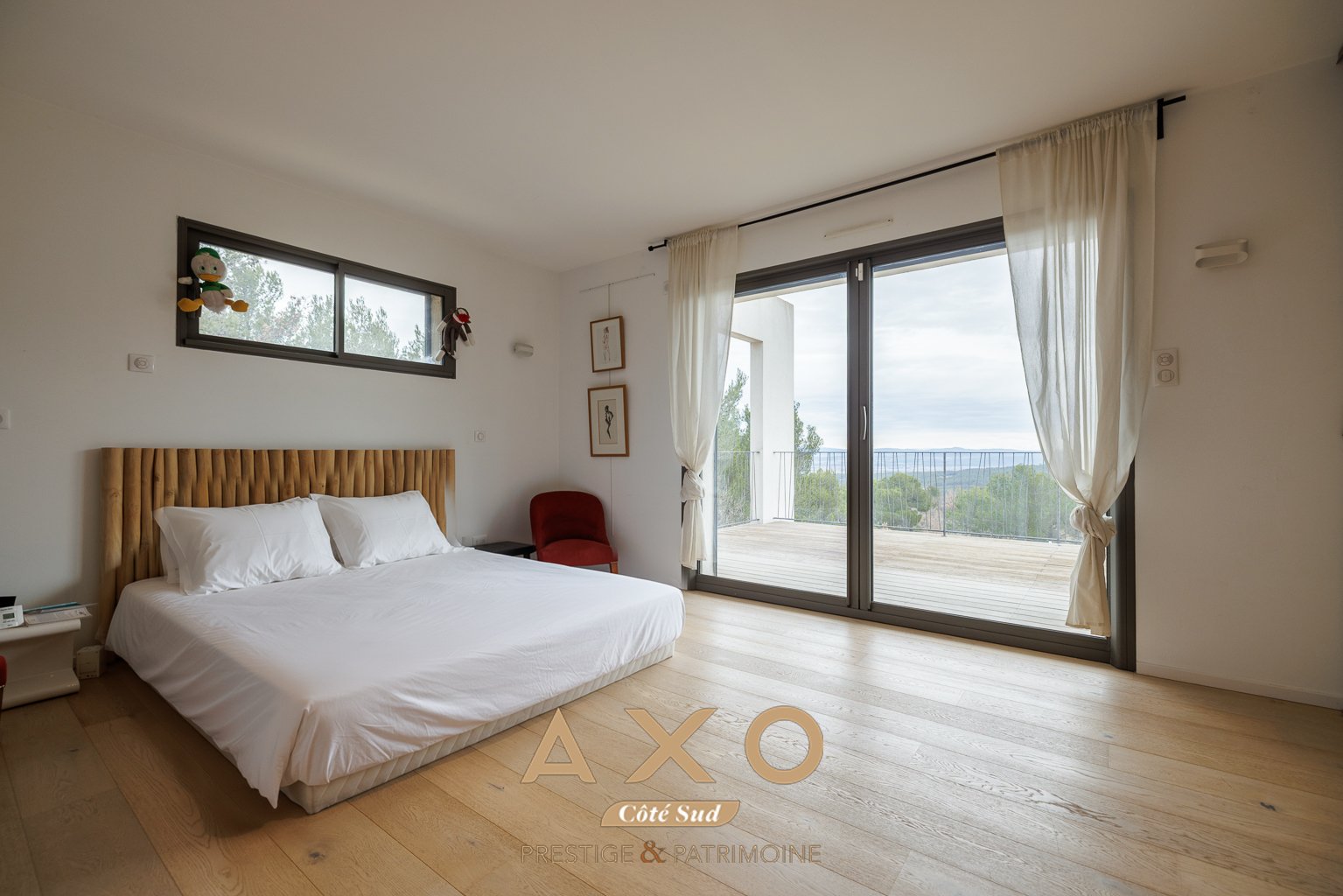 – un bureau vitré, véritable belvédère sur le paysage, ouvre la voie à une suite parentale élégante, prolongée par une terrasse privative avec une vue spendide sur le Luberon et le Mont Ventoux. Deux chambres supplémentaires, lumineuses et harmonieuses, se partagent une salle de bain.