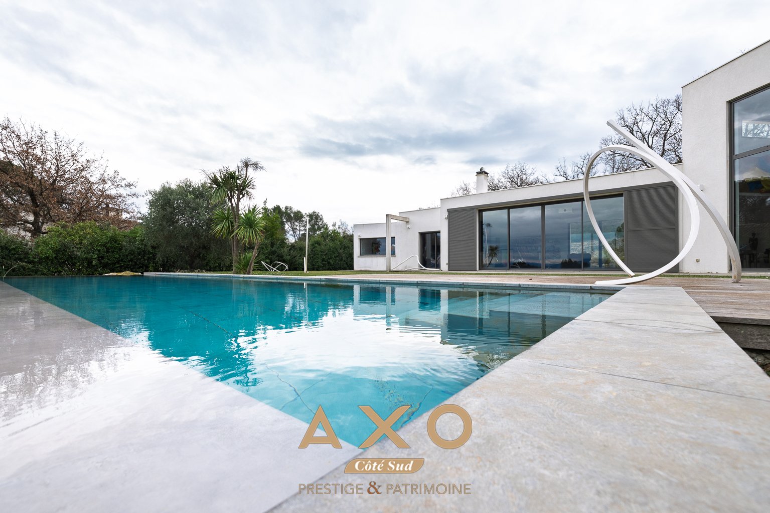 Implantée sur un terrain paysager de 3 200 m², la propriété déploie une vaste terrasse, une piscine à débordement aux lignes contemporaines, et un terrain de pétanque, invitant à la détente et aux moments de partage face à un panorama d'exception.