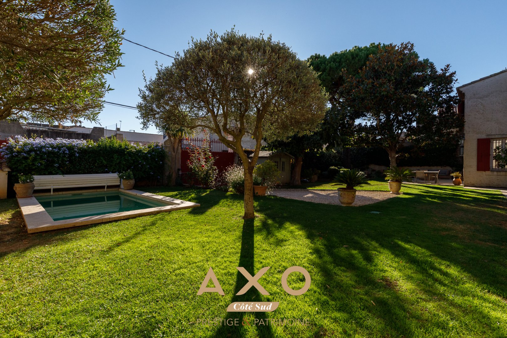 Magnifique jardin arboré de 650 m², entièrement clos et paysagé Piscine parfaitement intégrée au jardin, pour des moments de détente en toute intimité Forage et arrosage automatique pour un entretien simplifié Parking intérieur sécurisé