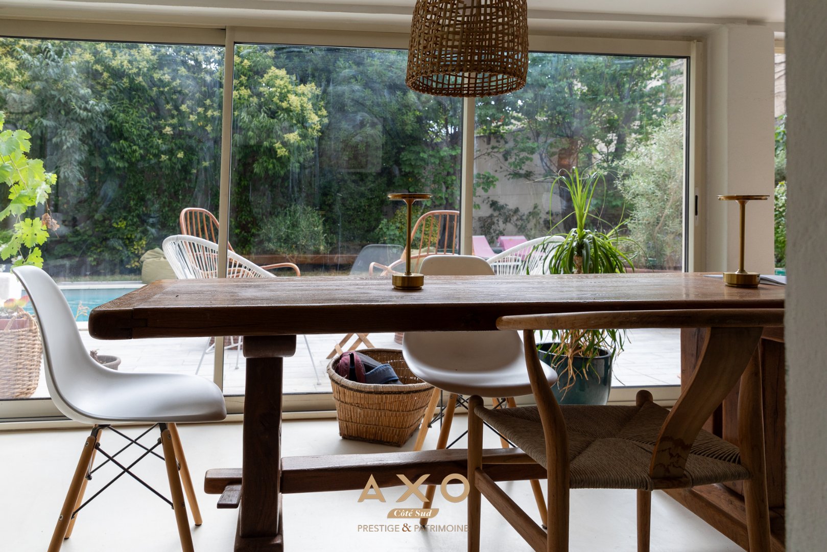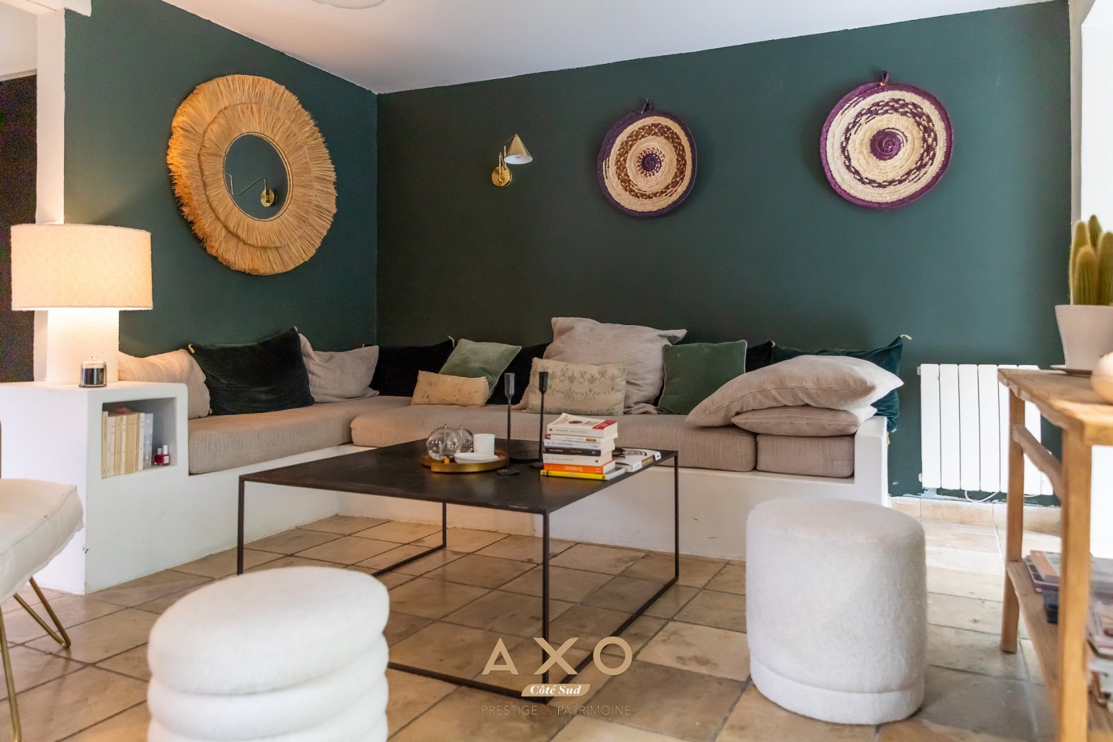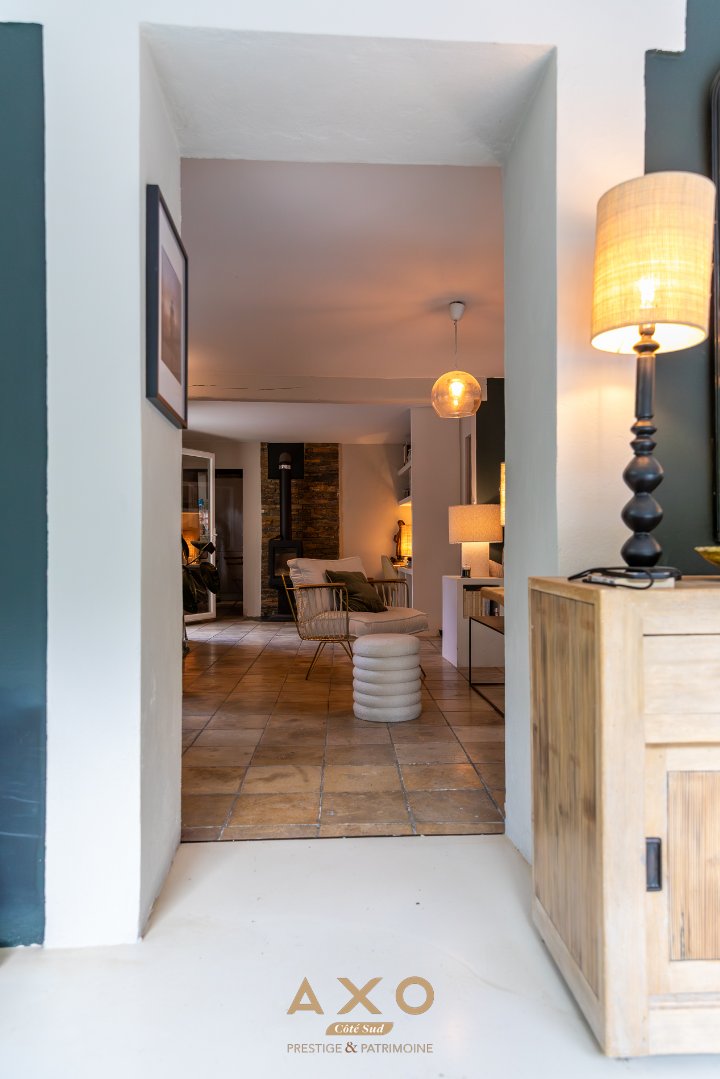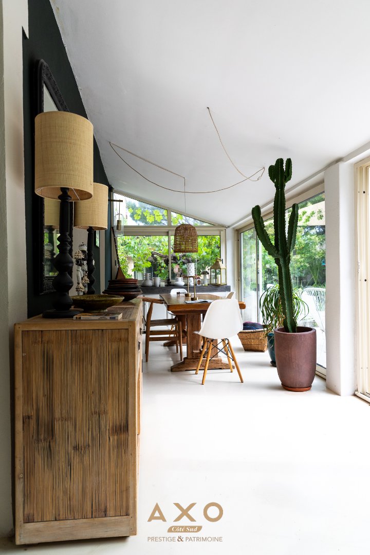 Nul vis-à-vis, nul regard intrusif. L'espace se développe : d'une vaste pièce de vie baignée de lumière, ouverte sur une véranda au sol en béton ciré, doux comme la pierre des anciens temps. Murs enduits de chaux, synonyme d'élégance. Et au-delà de la véranda, la piscine s'offre, entourée d'un jardin bucolique où la nature est belle. La cuisine, séparée, et son arrière-cuisine, discrète, se fait buanderie, utile compagne du quotidien.