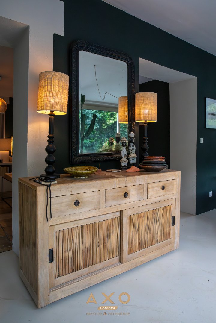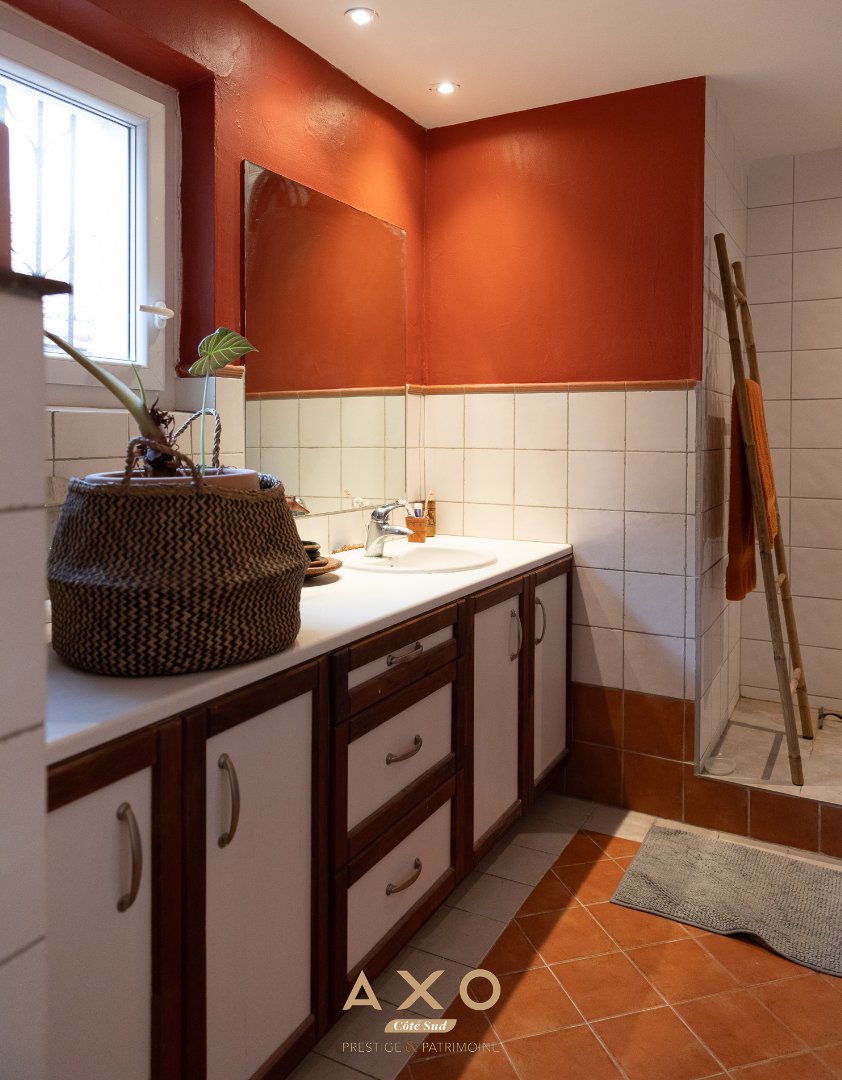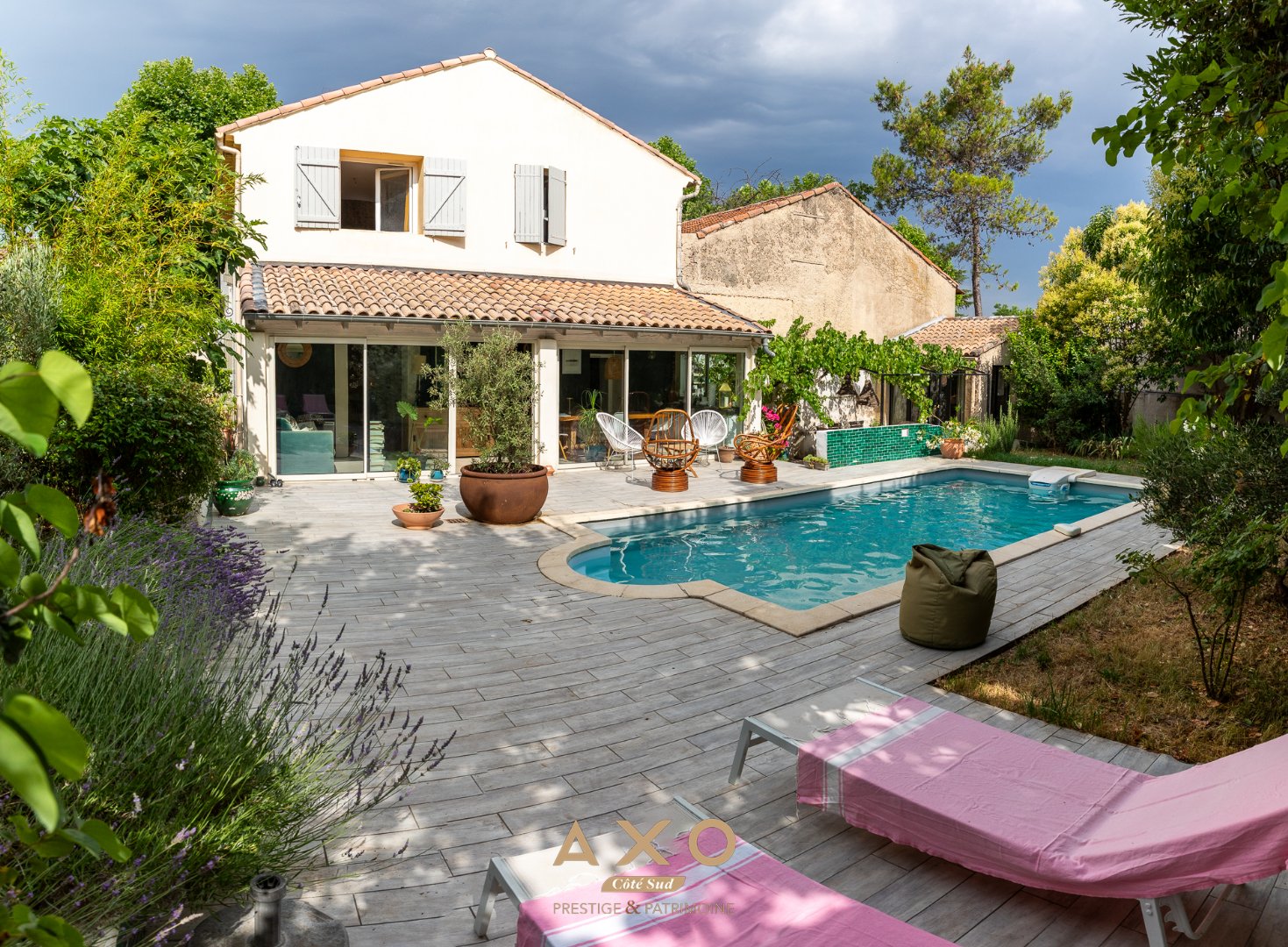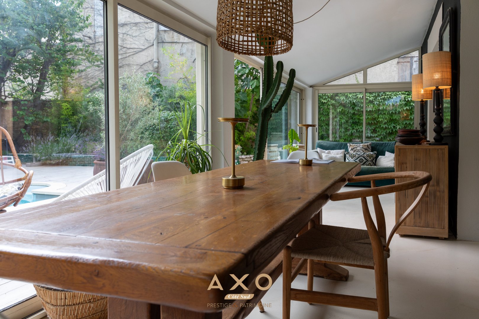 Nul vis-à-vis, nul regard intrusif. L'espace se développe : d'une vaste pièce de vie baignée de lumière, ouverte sur une véranda au sol en béton ciré, doux comme la pierre des anciens temps. Murs enduits de chaux, synonyme d'élégance. Et au-delà de la véranda, la piscine s'offre, entourée d'un jardin bucolique où la nature est belle. La cuisine, séparée, et son arrière-cuisine, discrète, se fait buanderie, utile compagne du quotidien.