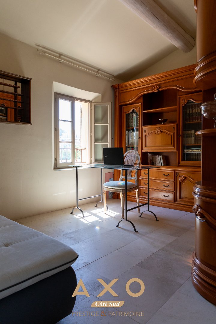 À l'étage, accessible par un escalier de pierre façonné par un artisan local, se découvre un espace composé d'un bureau (pouvant devenir chambre) et d'une vaste chambre scindée en deux espaces distincts, tous deux surplombant le jardin et la piscine. Ces chambres partagent une élégante salle d'eau équipée d'une douche à l'italienne.